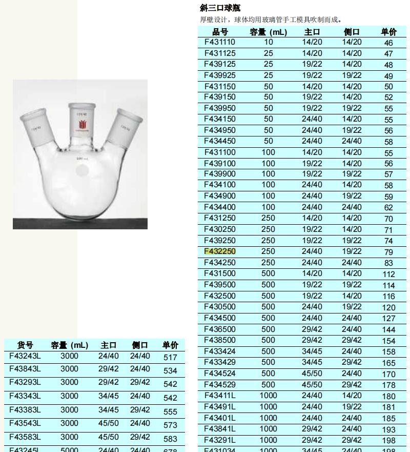 • 规格:250ml 中间24/40侧19/22