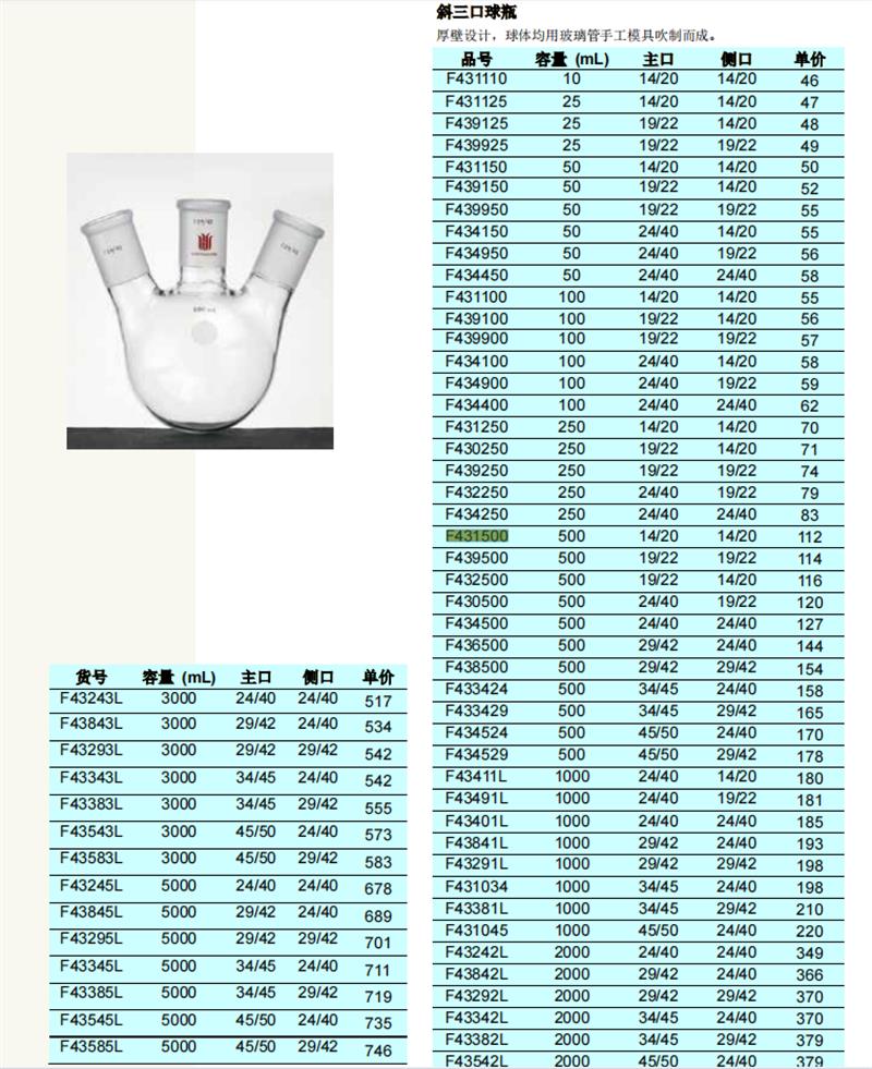 欣维尔 欣维尔 济南库 斜三口烧瓶 2000ml 中间磨口:34/45侧磨口:29/42 欣维尔 2000ml 中间磨口:34/45侧磨口:29/42 济南库 2000ml 中间磨口:34/45侧磨口:29/42 济南库