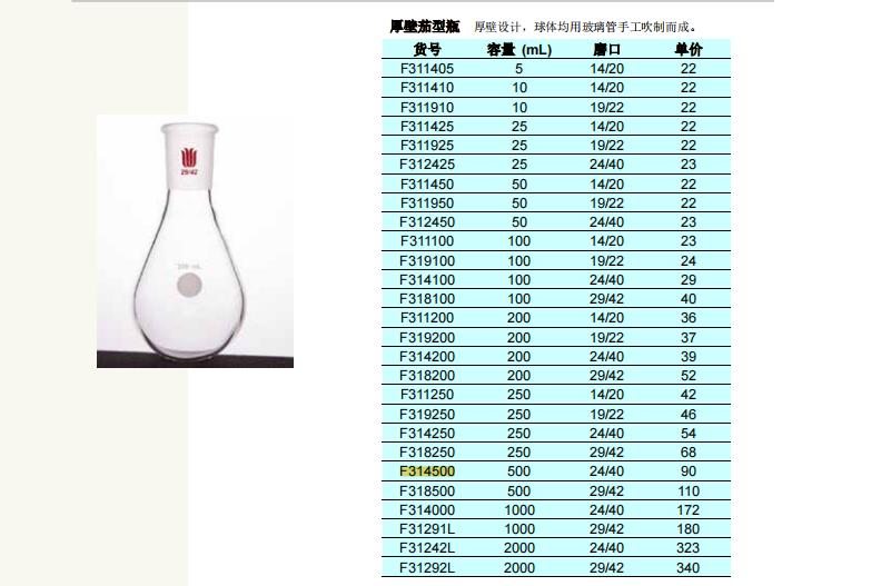 欣维尔 济南库 茄形烧瓶 500ml24/40 欣维尔 500ml24/40 济南库