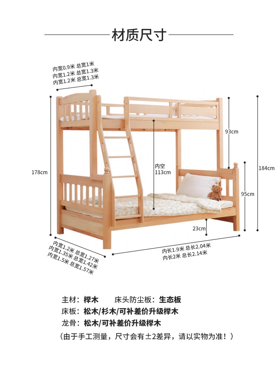 注:内长均可配2米/1.9米