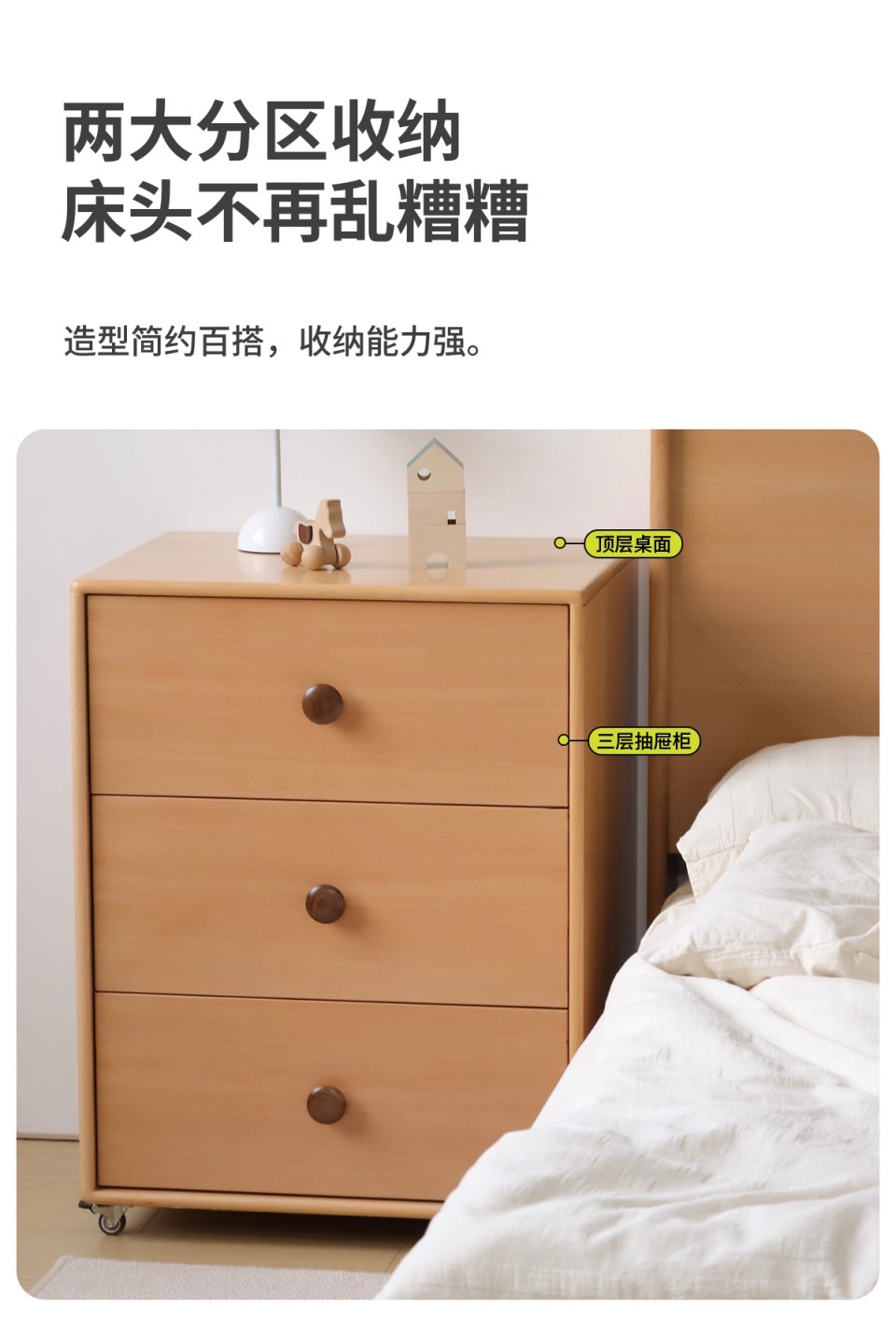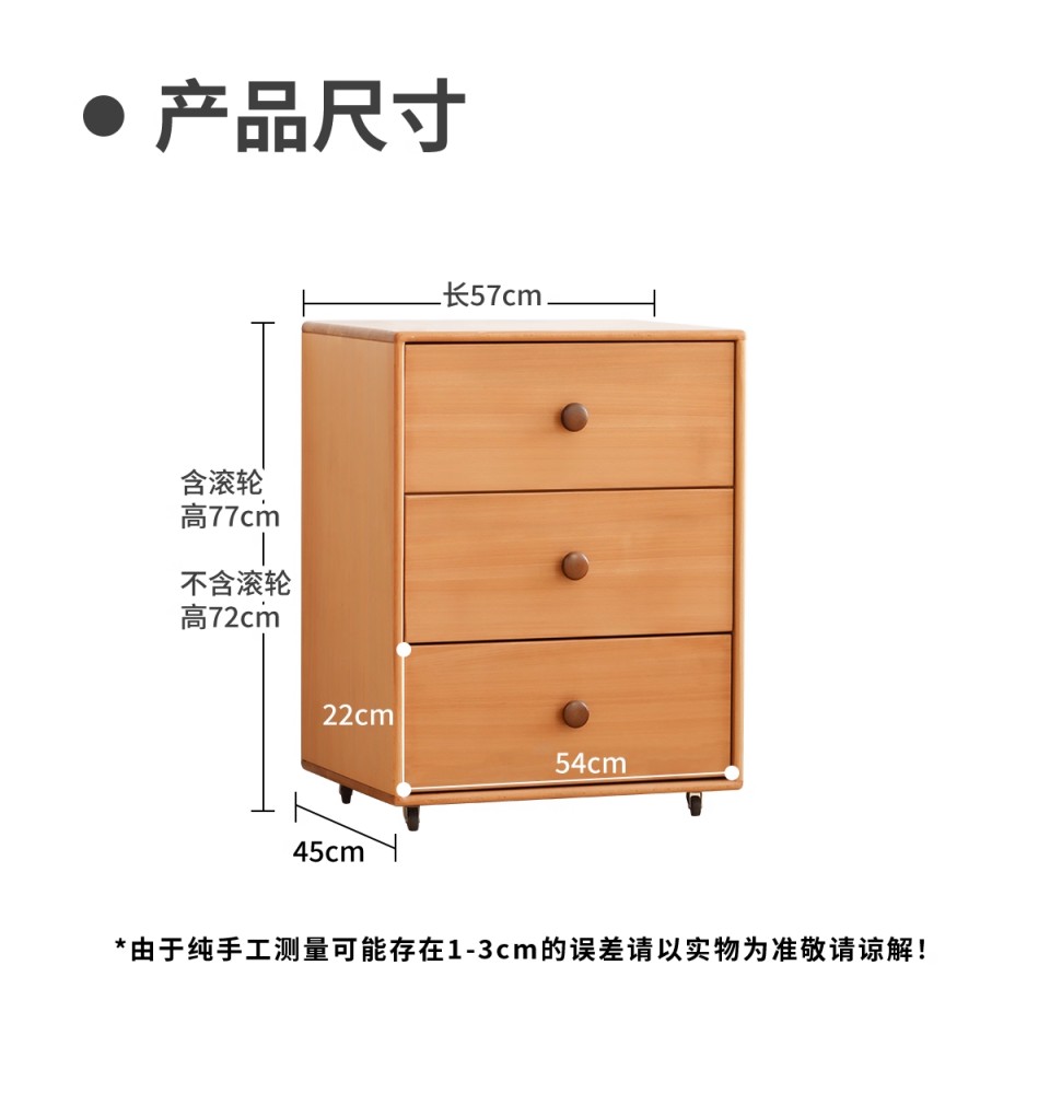 爱客意 榉木三斗柜贝里 57*45*77 贝里三斗柜