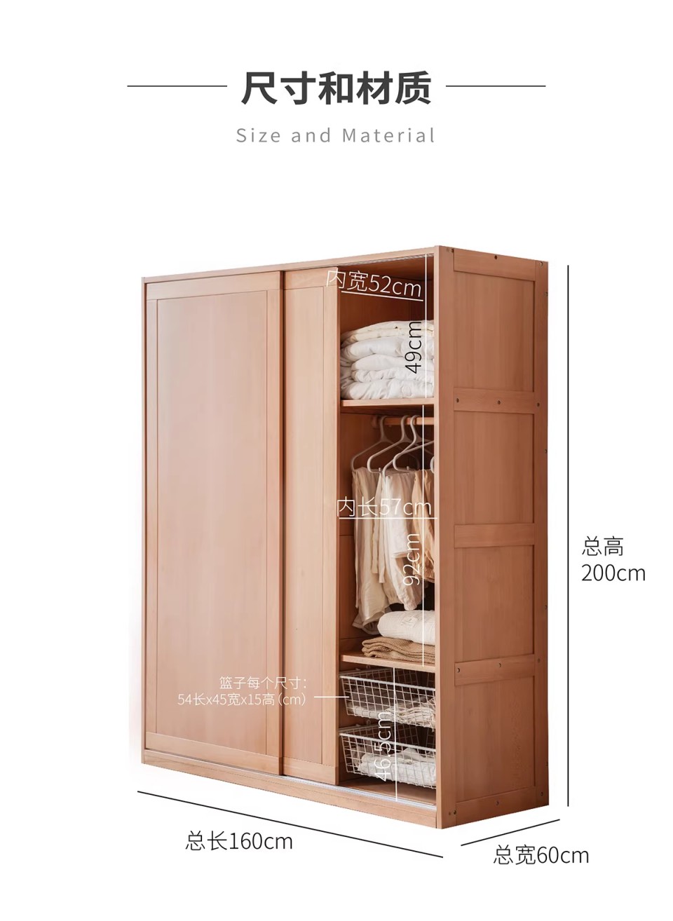 爱客意 榉木衣柜推拉门维拉 160*60*200 维拉